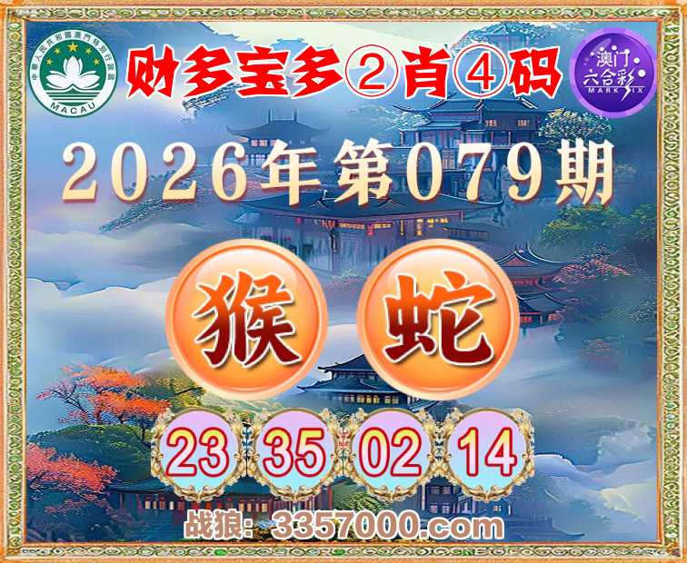 079期:《财多宝多》 🥽②肖④码🥽【蛇】【23.35.02.14】开:猴35准上榜高手